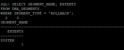 현재 데이터베이스 인스턴스에서 사용중인 모든 undo segment에 대한 정보를 보려면 다음과같다.