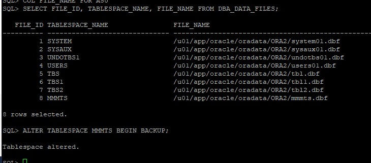 2. mmmts 테이블 스페이스 begin backup 후 datafile 백업